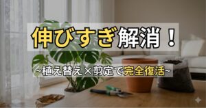 そこでこの記事では、切ったところから新しい芽を出させるコツや、伸びすぎて支柱が必要なケース、さらにひょろひょろになったモンステラの徒長を仕立て直しで復活させる方法まで、私の経験を交えて詳しく解説していきますね。